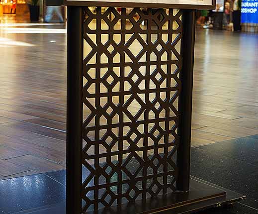Use our weather resistant rich craft as Louvre Systems to filter excessive light and heat, while conveying subtle aesthetics. Exterior walls and facades can beautifully be livened up with our artistic cladding designs. Our modelled screens can be used as enclosures or partitions elegantly enhancing the inner beauty of a structure, which can further be complemented by elegantly carved supports for display objects or props.